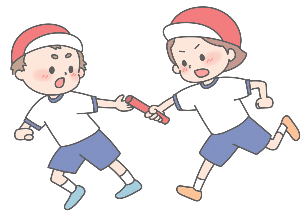 運動会と言えば全員リレー!この競技は必ずチーム全員が走ります!誰がどのタイミングで走るかが重要になってきます!全員リレールール体育館が小さいので、体育館の端から端での往復です最終走者はタスキを掛けてください入口側からスタートし、ステージへタッチして折り返します。審判の旗が挙がるようにステージへタッチしてください人数が足りない場合は誰かが2回走ります 競技説明 狛江大運動会#01 シェアはこちらか URLをコピーしました! URLをコピーしました! 狛江大運動会#1 大縄跳び ポスターが完成しました 関連記事 狛江大運動会#2 ボウリング大会 2024年3月11日 狛江大運動会#1 大縄跳び 2023年3月31日 狛江大運動会#1 綱引き 2023年3月31日 狛江大運動会#1 ドッヂボール 2023年3月31日 狛江大運動会#1 玉入れ 2023年3月31日 狛江大運動会#1 ムカデリレー 2023年3月31日