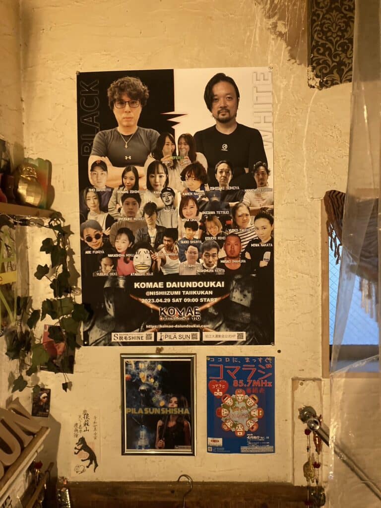 そして[狛江シーシャ酒場PILA SUN]の階段上がった場所に掲出していただきました。帰りには確実に目に入りそうなので皆さんピラに見に行ってみてください!
